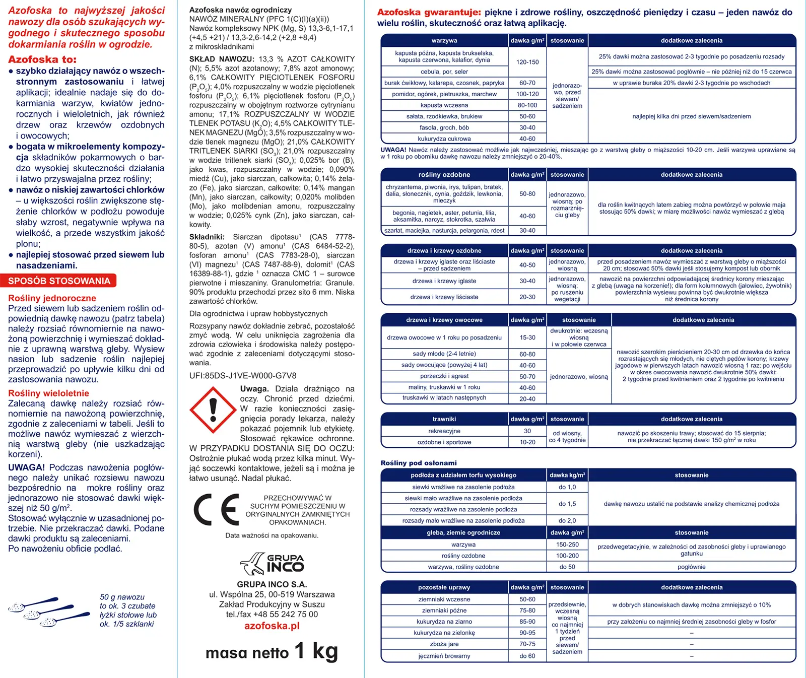 - szybko działający nawóz o wszechstronnym zastosowaniu i łatwej aplikacji, który idealnie nadaje się do dokarmiania warzyw, kwiatów jednorocznych i wieloletnich także drzew oraz krzewów ozdobnych i owocowych;