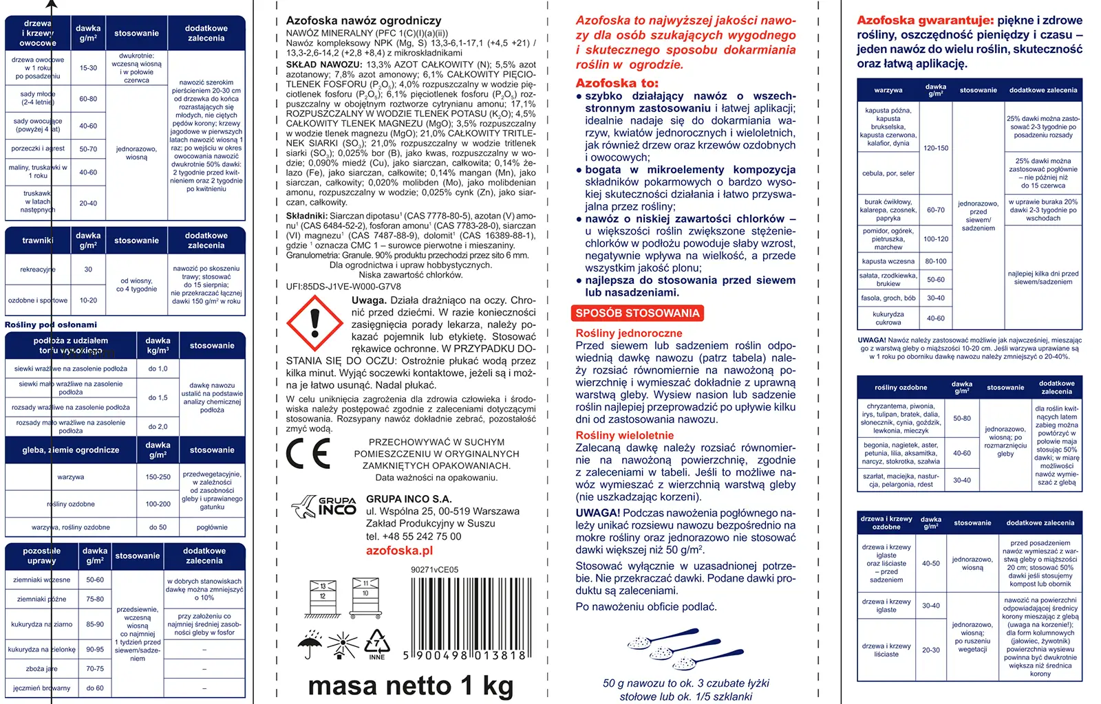 - szybko działający nawóz o wszechstronnym zastosowaniu i łatwej aplikacji, który idealnie nadaje się do dokarmiania warzyw, kwiatów jednorocznych i wieloletnich także drzew oraz krzewów ozdobnych i owocowych;