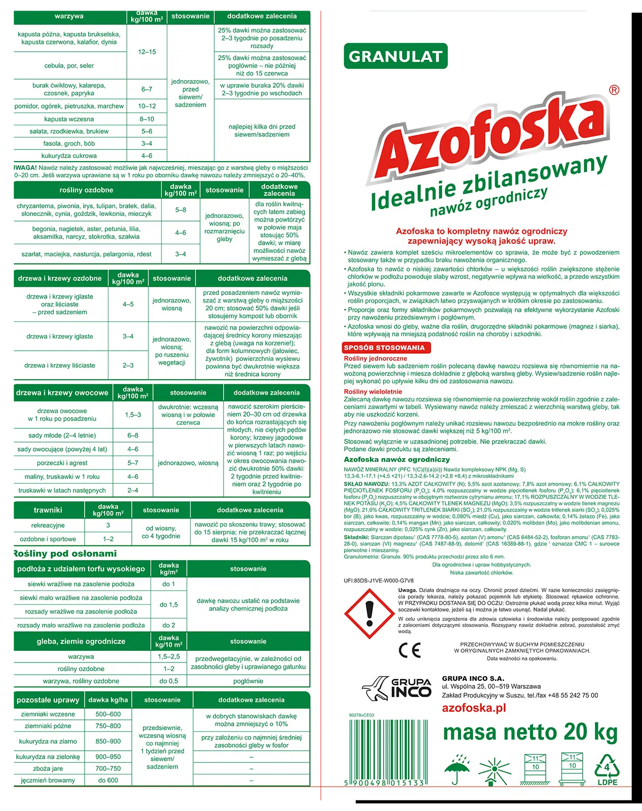 Azofoska granulowany nawóz worek 20 kg