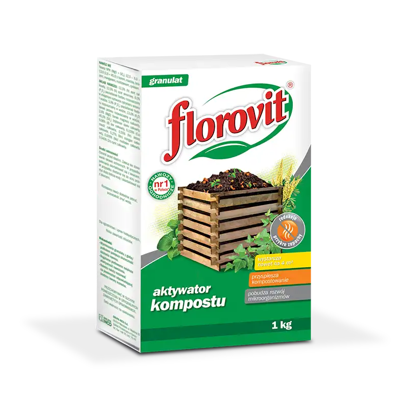 Florovit Aktywator kompostu skutecznie przyśpiesza proces kompostowania resztek organicznych z domu i ogrodu. Sprzyja powstawaniu naturalnej próchnicy oraz pobudza rozwój pożytecznych mikroorganizmów w glebie, redukując przy tym nieprzyjemne zapachy.