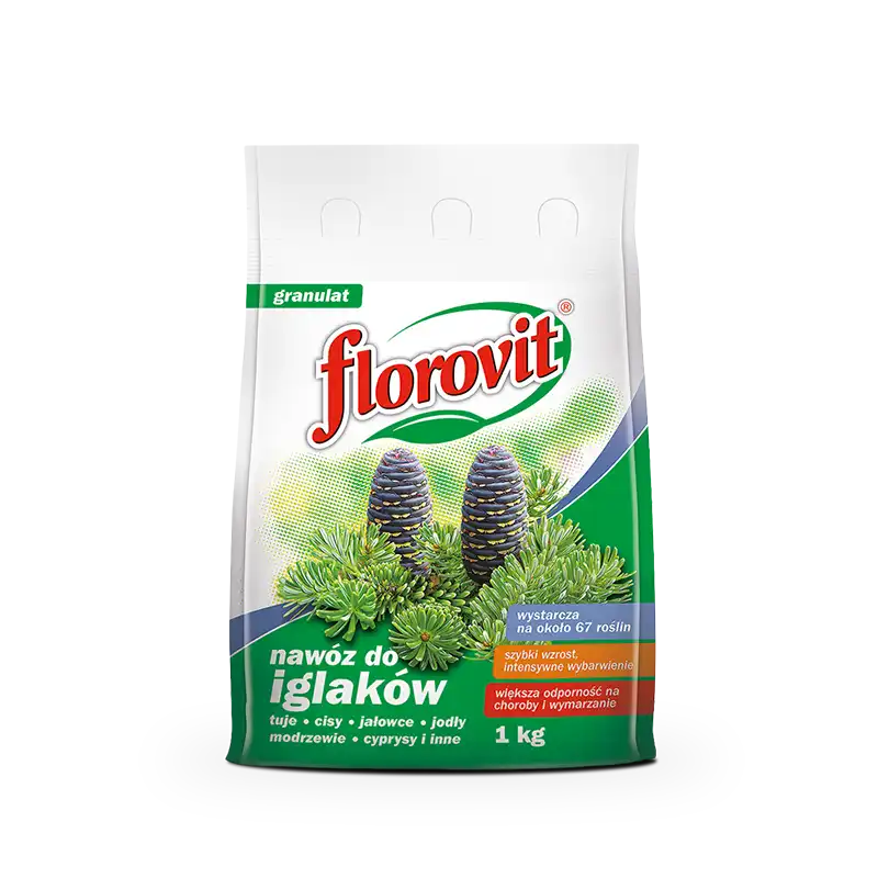 Florovit nawóz do iglaków zawiera składniki mineralne w ilościach odpowiadających zapotrzebowaniu ozdobnych roślin iglastych. Przeznaczony dla roślin takich jak cis, modrzew, cyprys, świerk, sosna, jodła i inne. Regularne stosowanie zapewnia piękny wygląd i intensywny wzrost nawożonych roślin oraz zmniejsza przebarwienia igieł w okresie zimowym.