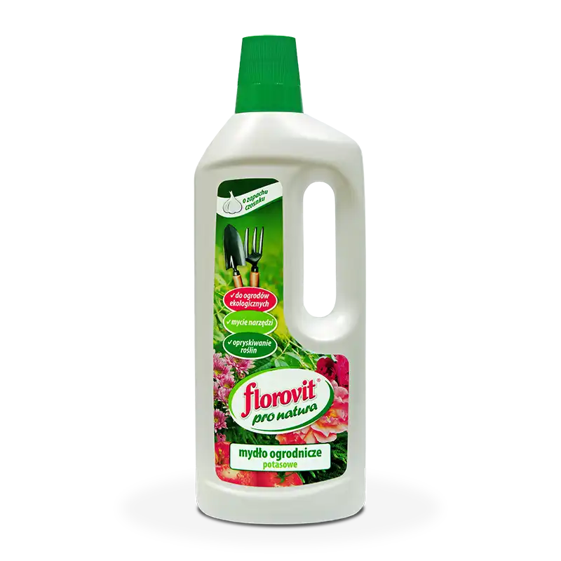 Florovit pro natura mydło ogrodnicze potasowe o zapachu czosnku dzięki swoim właściwościom może być używane do oprysków roślin (pomaga zachować naturalną odporność roślin) jako środek myjący. Mydło może być także stosowane do zmywania mszyc, roztoczy itp. Dodatek wyciągu z czosnku wzmacnia działanie mydła ogrodniczego Florovit pro natura.