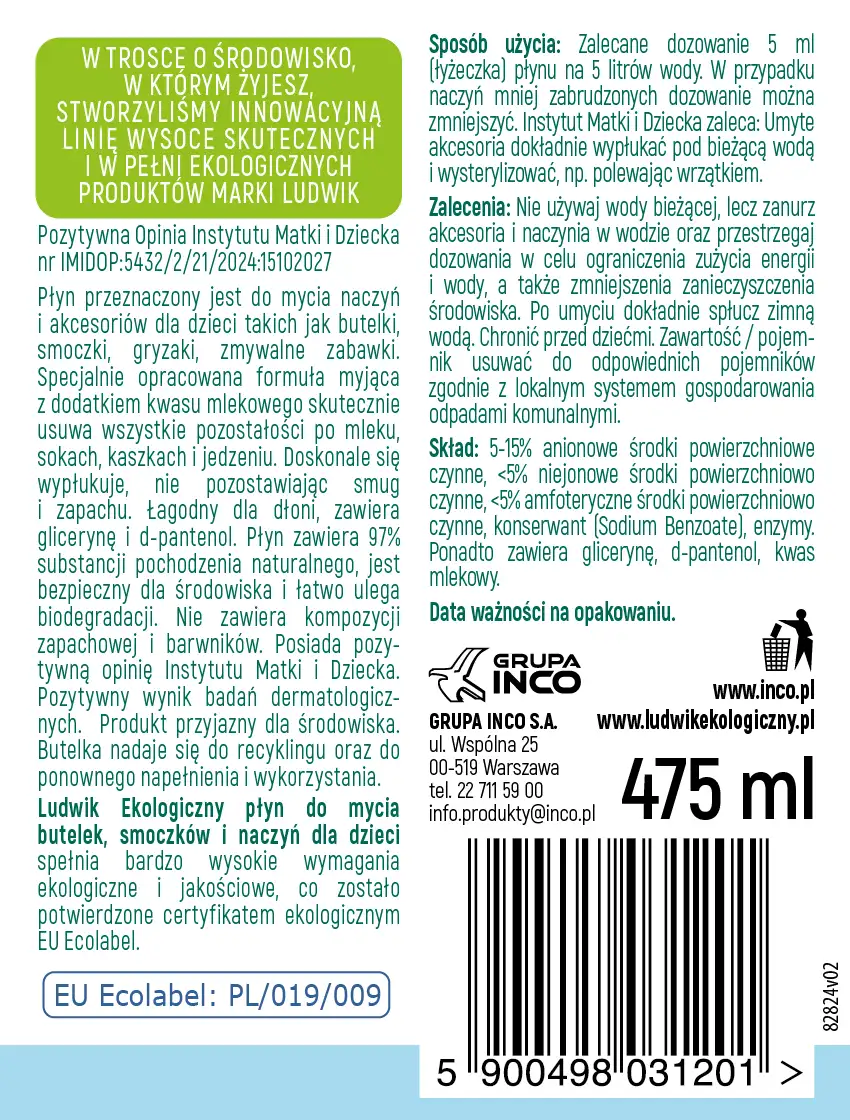 Ludwik Ekologiczny płyn do mycia butelek, smoczków i naczyń dla dzieci 475 ml