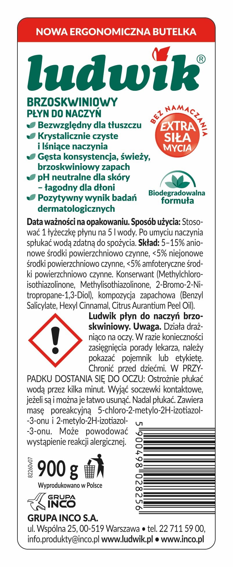 Ludwik Płyn do mycia naczyń brzoskwiniowy 900 g